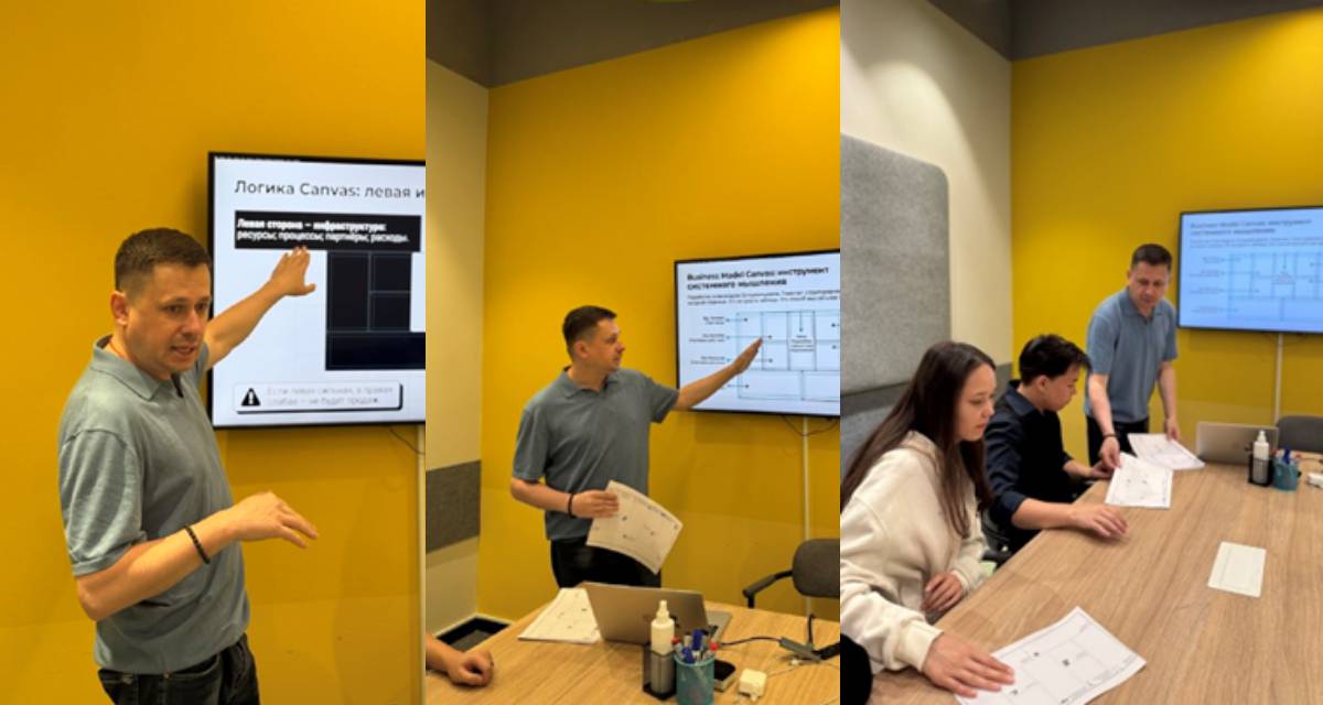 Ruslan Gaidarov introduced students to the Business Model Canvas, a fundamental tool for designing any startup.