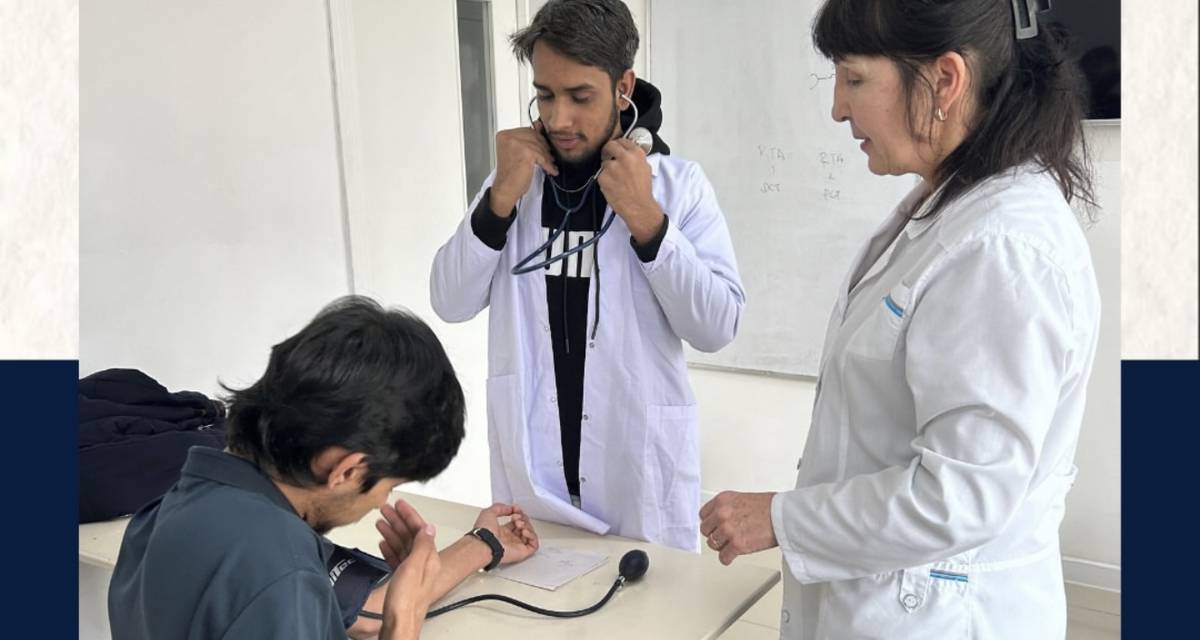 Under the guidance of instructor Rano Sharifovna, students are mastering nursing skills and learning how to measure blood pressure correctly. Such hands-on sessions help reinforce theoretical knowledge and develop the professional skills necessary for their future work with patients.